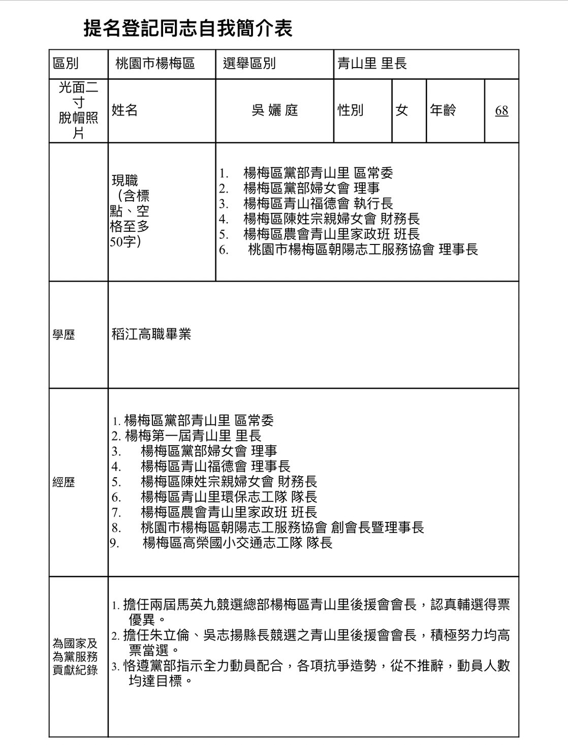 6.楊梅區黨部青山里區常委。