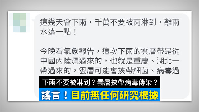 【易誤解】下雨不要被淋到?雲層挾帶病毒傳染?專家:不可信